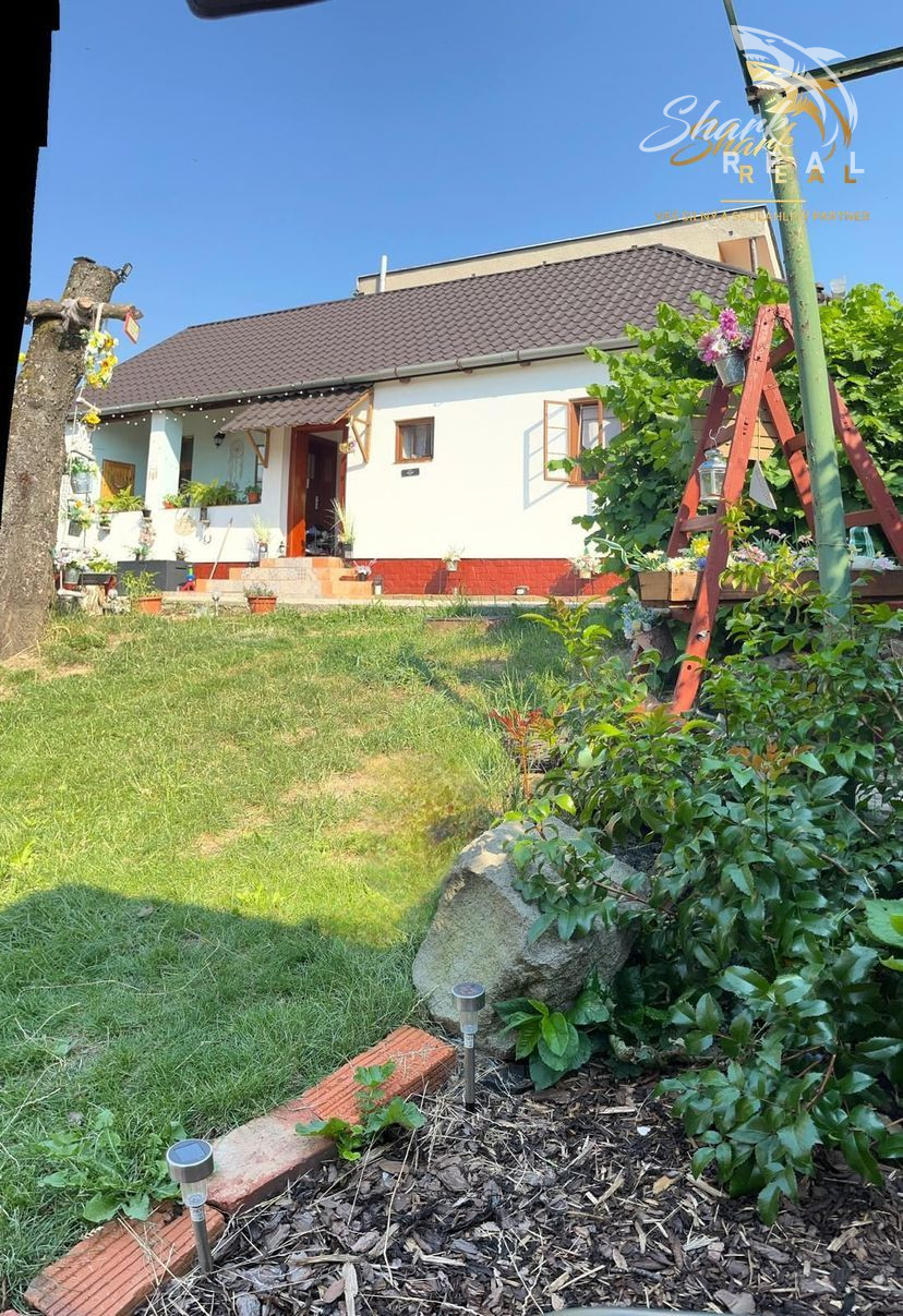 K domu prislúcha záhrada s dostatkom miesta pre bazén, grilovanie a záhradkárčenie. Pozemok je oplotený, nachádza sa na ňom aj šopa na odkladanie náradia a menší sklad. K domu vedie asfaltová prístupová cesta z dvoch strán, pričom pozemok je možný využiť aj ako investíciu a prípadne na ňom postaviť ďalší dom.