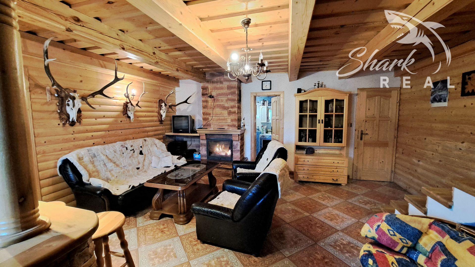 Prízemie: vstupná časť, priestranná kuchyňa s nádhernou keramickou pieckou, kúpeľňa (rohová vaňa, sprchový kút, umývadlo, toaleta), obývacia izba s krbom, rohová kuchynka / bar, špajza, kúpeľňa (rohová vaňa, sprchový kút, umývadlo, toaleta)