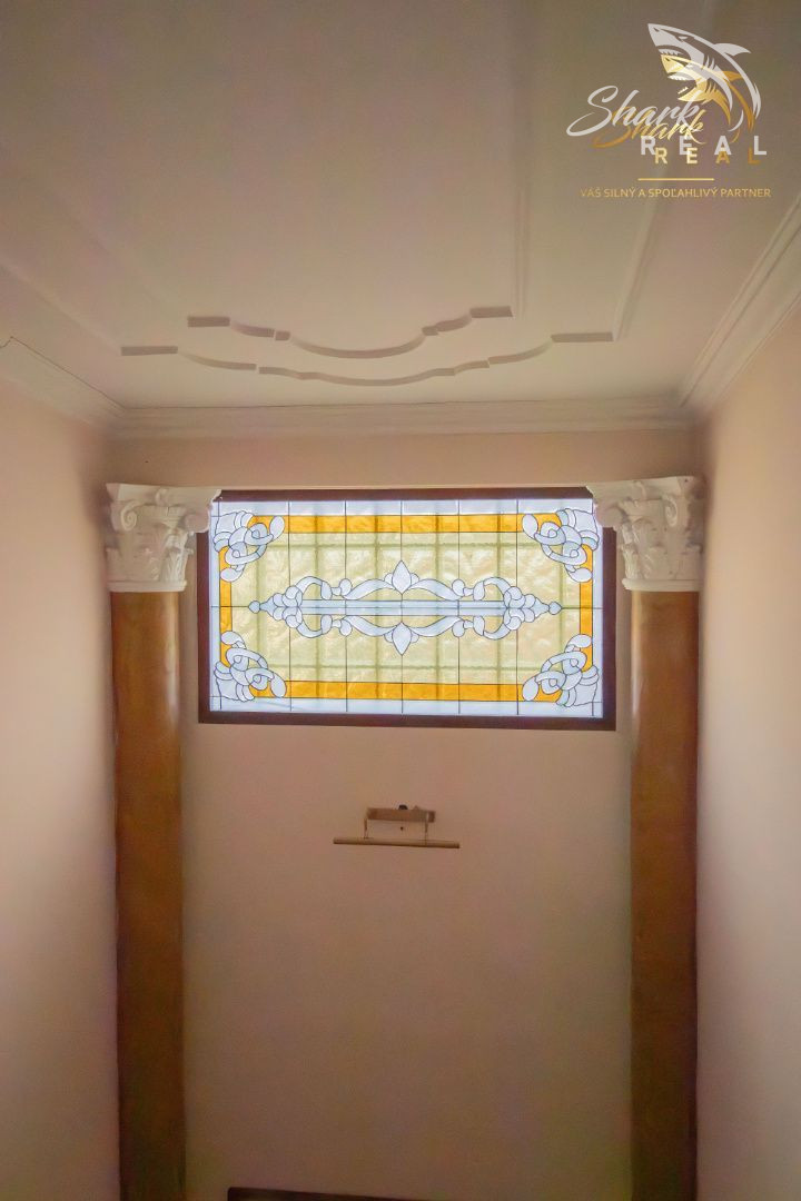 - Vitrážové okná, ktoré vytvárajú jedinečnú hru svetla a farieb.
