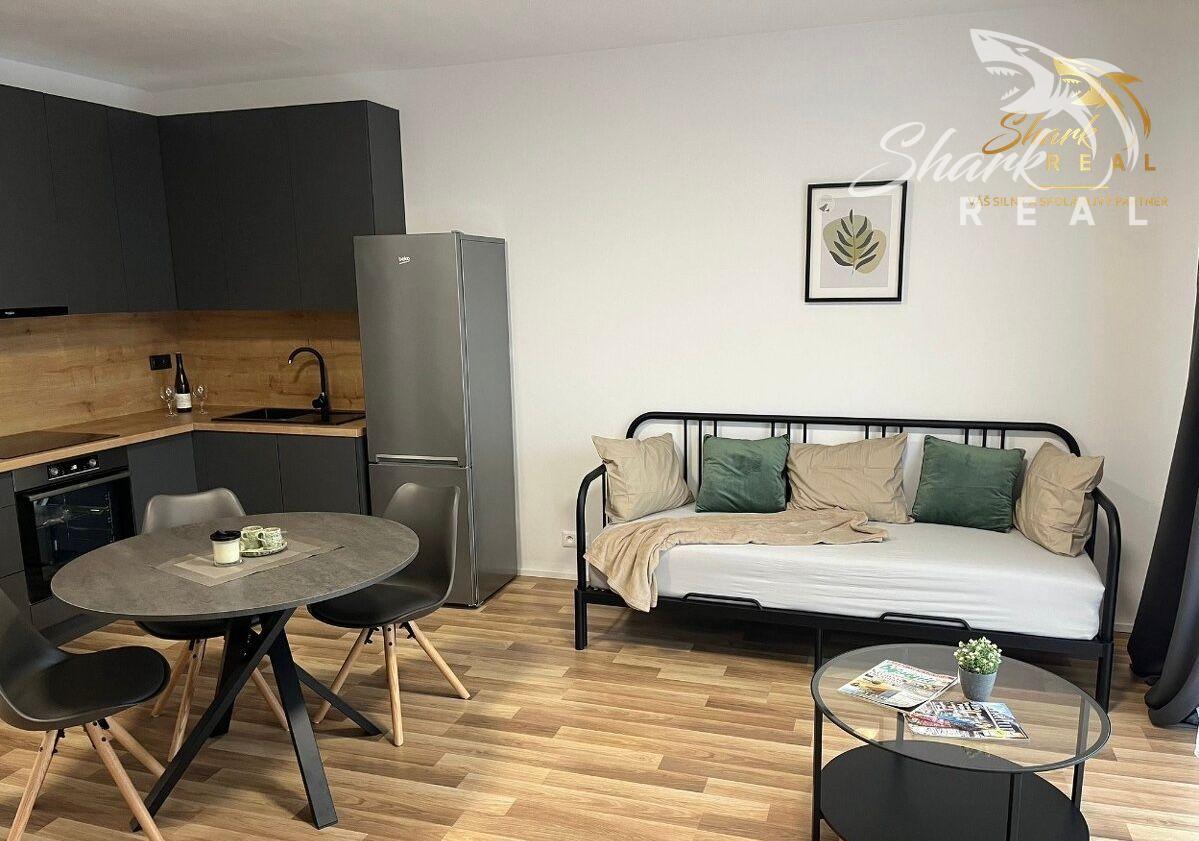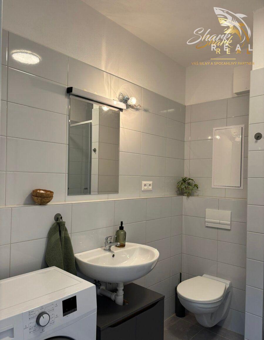Už pri vstupe vás privíta chodba so vstavanou skriňou, ktorá ponúka dostatok úložného priestoru. Kúpeľňa je nová, čistá a funkčná. Hlavná obytná miestnosť je príjemne presvetlená a spája obývaciu časť s kuchyňou, ktorá je kompletne vybavená spotrebičmi – vstavaná rúra, umývačka riadu, digestor, chladnička aj práčka. Všetko je nové a pripravené na každodenný život.