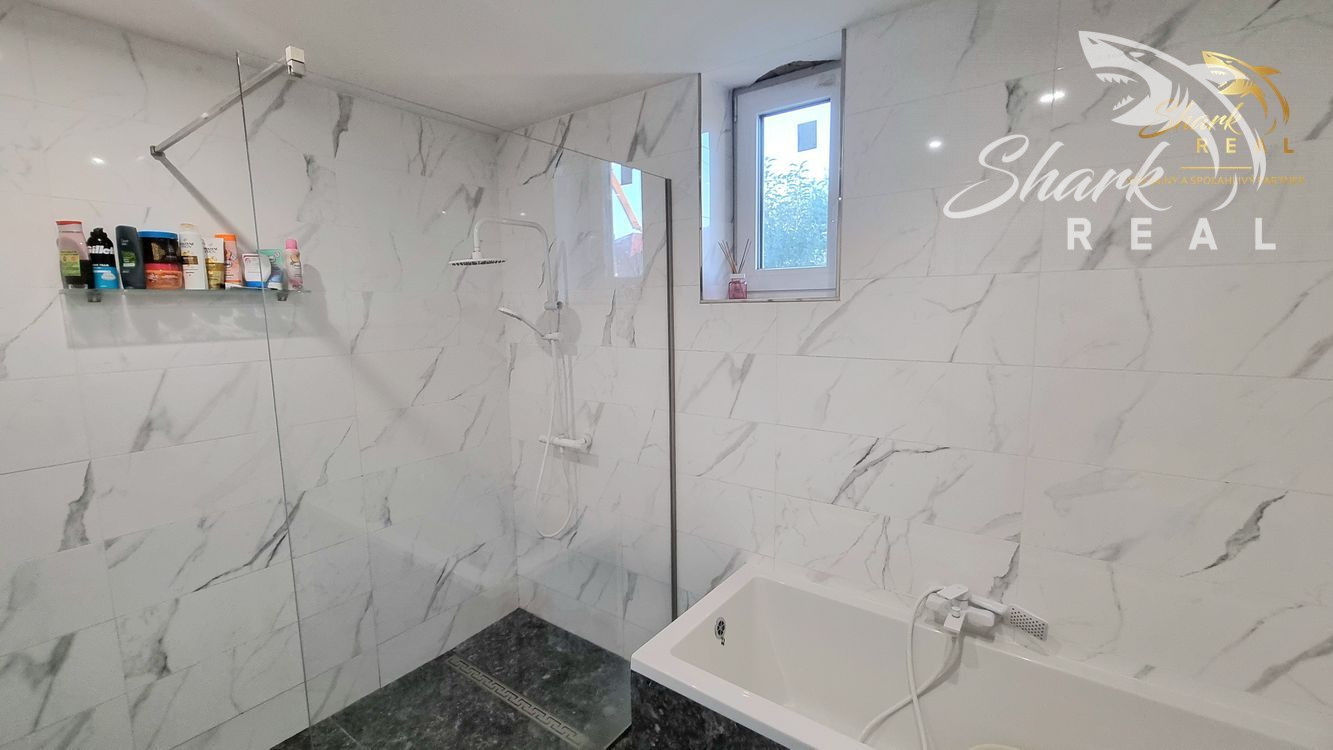 •	Kúpeľňa s veľkým sprchovacím kútom