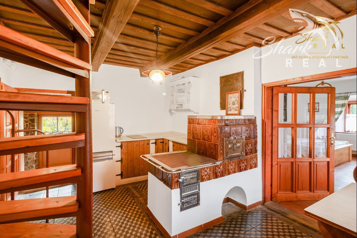 V druhej časti domu sa nachádza kuchyňa, technická miestnosť (komora), kúpeľňa so sprchovým kútom a toaletou, schodisko do podkrovia kde sa nachádza predsieň, kúpeľňa s rohovou vaňou a toaletou, priestranná izba s výstupom na lodžiu, chodba a ďalšia samostatná izba. Nehnuteľnosť prešla kompletnou rekonštrukciou od fasády až po strechu a tiež bol zrekonštruovaný interiér celej chaty. Kúrenie je ústredné kotlom na tuhé palivo, ktorý sa nachádza v samostatne stojacej kotolni. V chate sú aj keramické krby na prikúrenie prípadne na spríjemnenie zimných večerov.