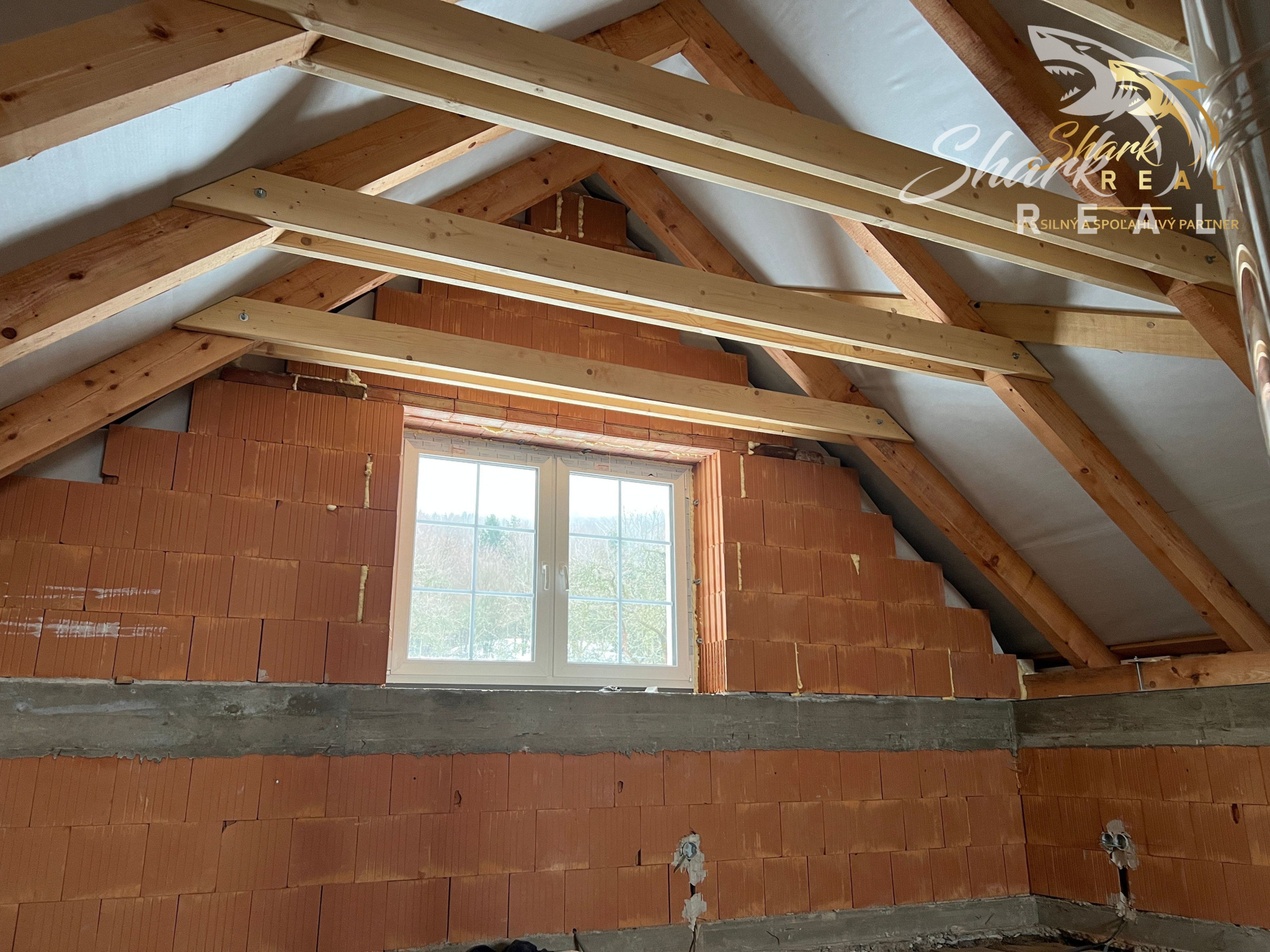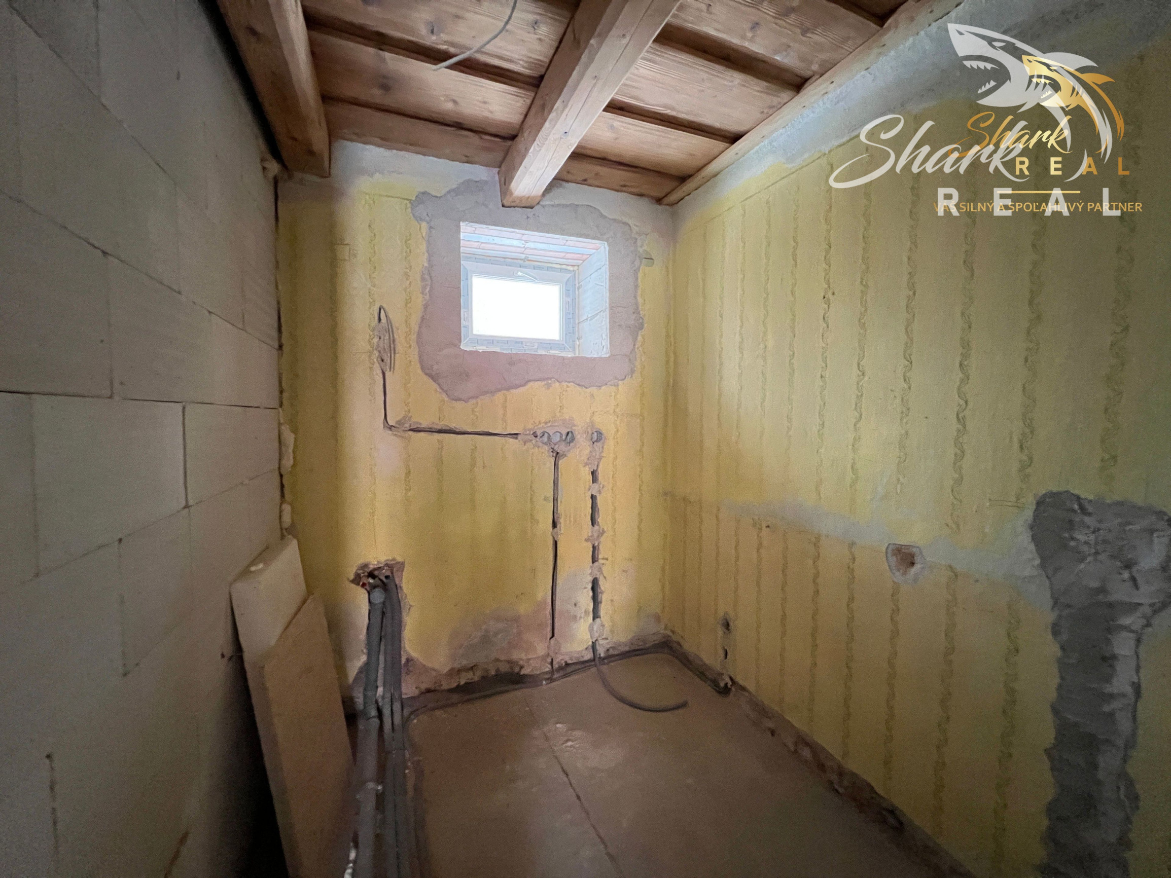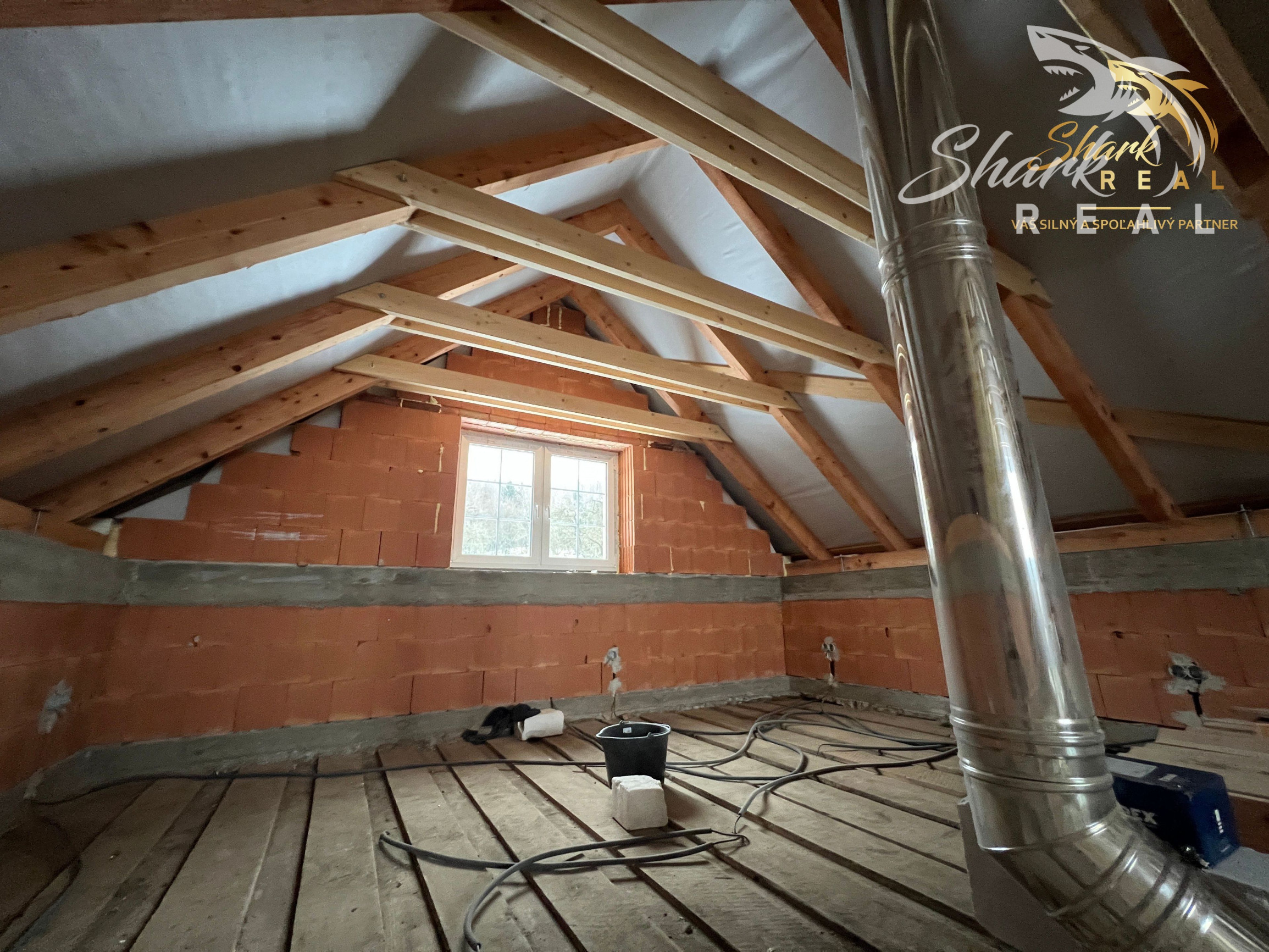 Interiér je pripravený na finálne dokončenie podľa vlastného vkusu (stierky, schody, podkrovie).