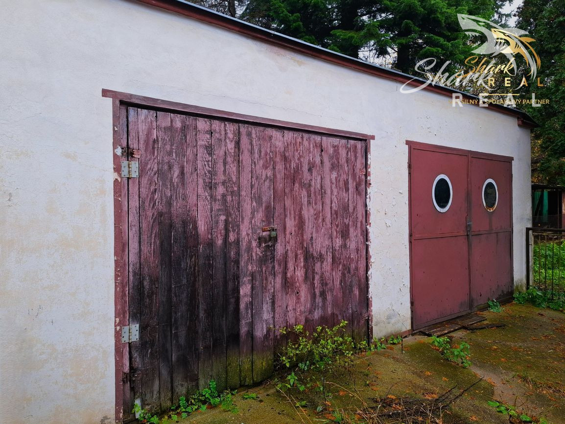 Na dvore sú ďalšie odkladacie a hospodárske priestory a veľká garáž s dvomi bránami.