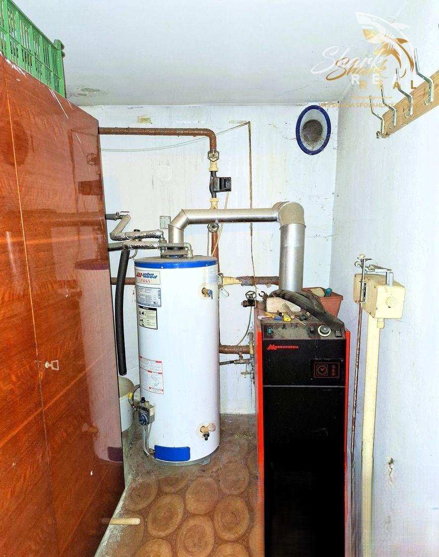 Kúrenie je ústredné, zabezpečené kotlom na zemný plyn, tiež je možné aj kúrenie ďalším kotlom, ktorý je na tuhé palivo.
