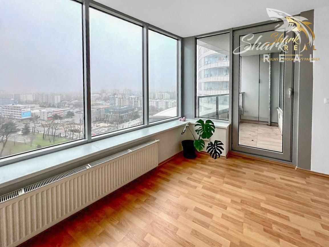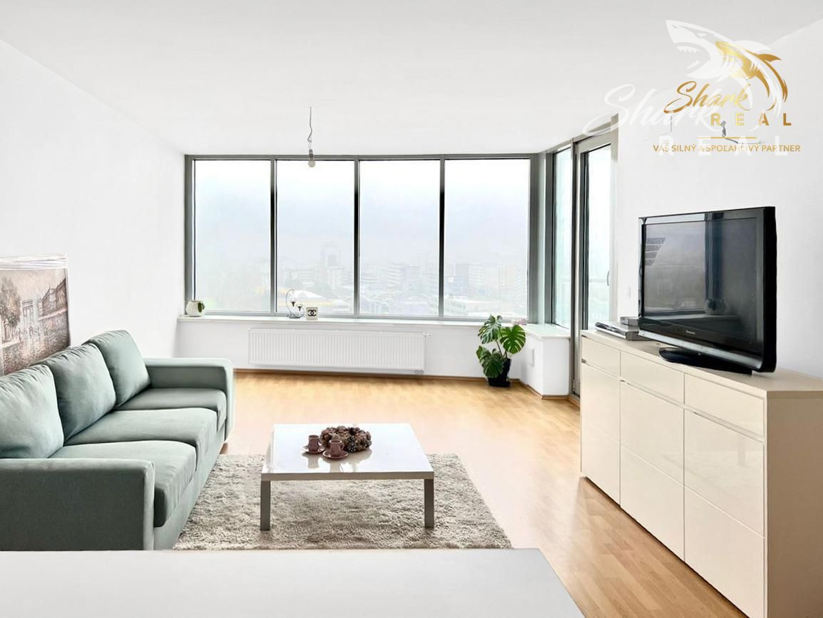 Tento krásny byt sa nachádza v známom komplexe Tri veže a okrem lukratívnej polohy, zaručuje maximálny komfort bývania 24h recepcia s kamerovým systémom, spoločenské miestnosti a fitness centrum priamo v dome. 15. poschodie poskytuje nádherný výhľad na mesto. Byt nieje orientovaný smerom na frekventovanú Bajkalskú ulicu takže je zabezpečený úplný akustický komfort . Byt sa nachádza v druhej veži a prislúcha k nemu aj parkovacie miesto priamo v garáži pod vežou. Pôsobí novučičkým dojmom, nakoľko je takmer neobývaný. Je kompletne vybavený, kuchyňa aj vstavané skrine sú robené na mieru. Pripravený k okamžitému nasťahovaniu. Pozostáva z menšej vstupnej haly, kde sa nachádza priestranný šatník, ďalej pokračuje veľká, svetlá obývačka s obrovským oknom a panoramatickým výhľadom, priestranná kuchyňa, kúpeľňa s práčkou a samostatná toaleta a samostatný vchod do veľkorysej spálne. Byt má skoro 5m2 loggiu, kde sa dá umiestniť pekné sedenie a v lete sa tam môžete aj opaľovať. Vstup na loggiu je z obývačky. Krásny výhľad máte aj priamo z postele. Táto rezidencia poskytuje najvyšší štandard bývania a preto sa takýto typ bytov vyskytuje v ponuke len málokedy. Zároveň je to aj veľmi dobrá investičná príležitosť.
