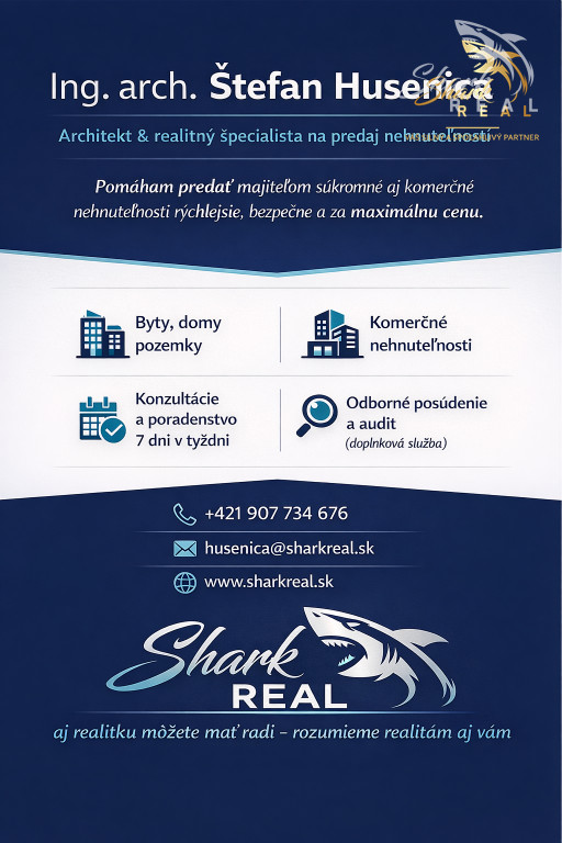 V cene sú zahrnuté realitné a právne služby realitnej kancelárie SHARK REAL