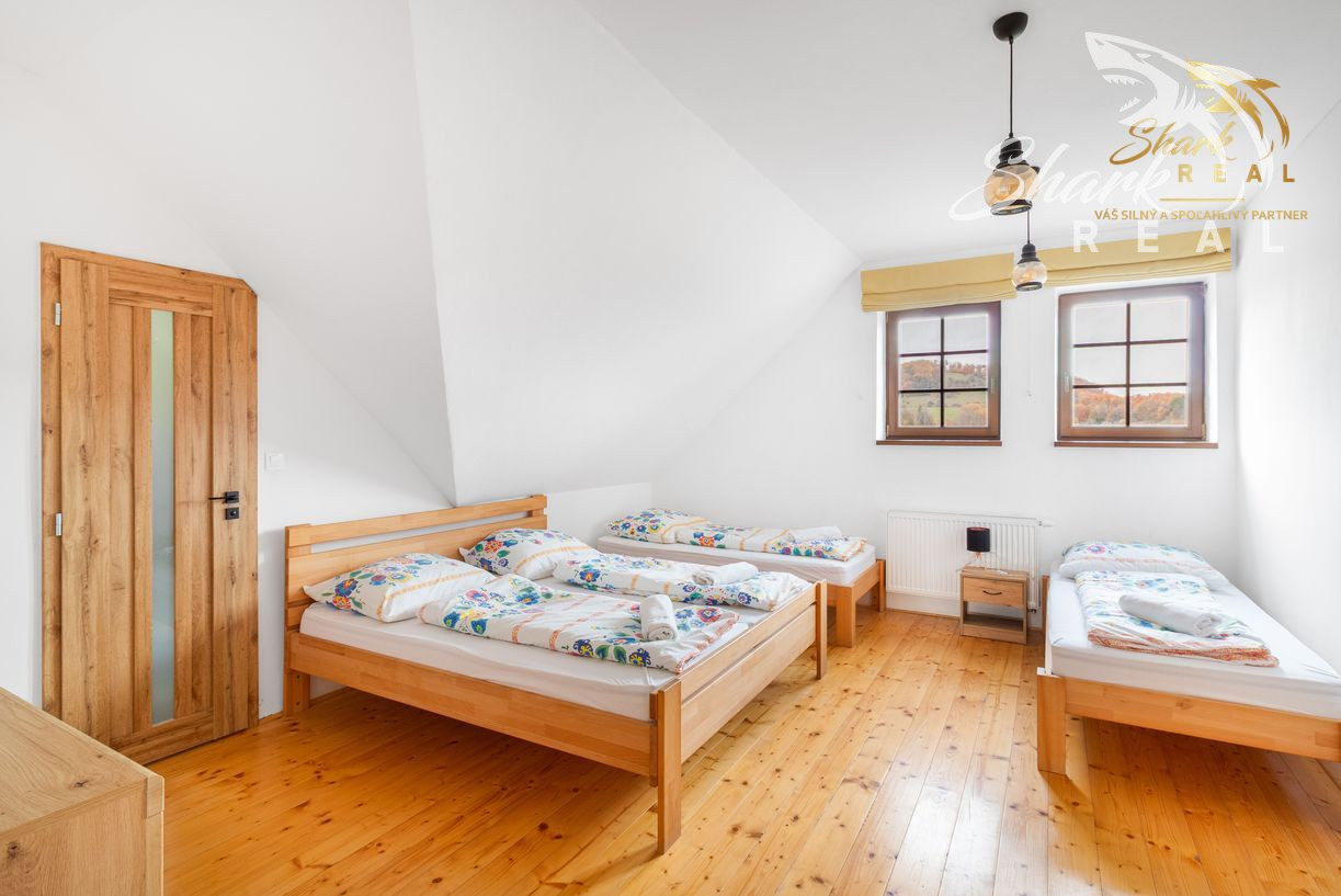 Shark real Vám ponúka na predaj krásnu priestrannú chatu s veľkým pozemkom pod lesom na okraji obce Hodruša Hámre časť Kopanice okres Žarnovica. Chata je vhodná na rekreáciu, alebo aj ako investícia s možnosťou výstavby ďalších chát. Chata s podlahovou plochou 250m2 je postavená na pozemku s rozlohou 2.7 ha na konci pozemku sa nachádza druhá útulne zrekonštruovaná chata s pozemkom 6420m2, ktorú si môžete pozrieť na linku nižšie.