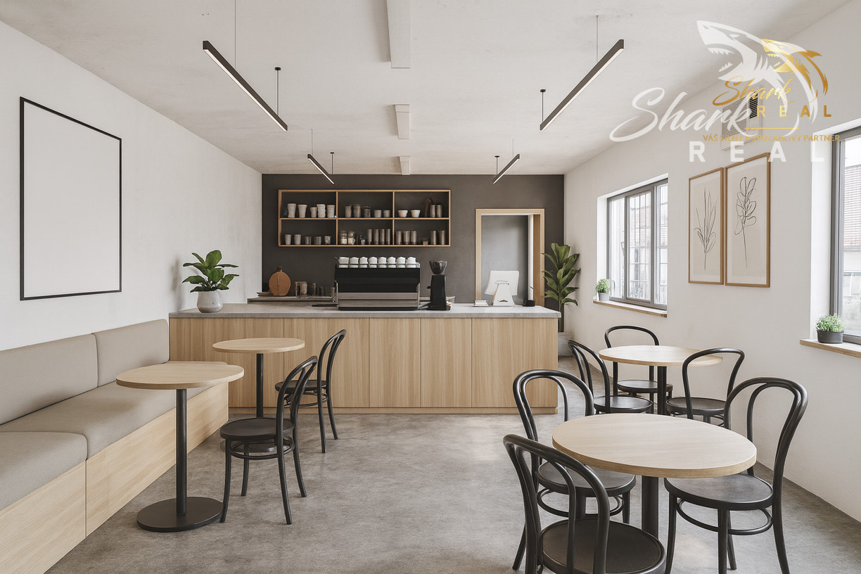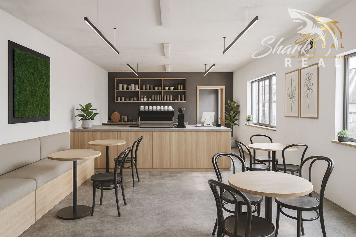 ● veľká priestranná miestnosť (ideálna ako predajná plocha či sedenie pre kaviareň)